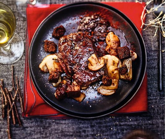 Lasciar decongelare in frigorifero i bocconcini di cinghiale per qualche ora. Versare il contenuto del misto per soffritto in un tegame con dell’olio extra vergine di oliva e lasciar soffriggere per qualche minuto. Unire i bocconcini di cinghiale e dopo qualche minuto di cottura, quando saranno rosolati, sfumarli con il vino rosso. Salare e chiudere il tegame con il coperchio e lasciar cuocere per almeno 1 ora aggiungendo di tanto in tanto il brodo granulare diluito in acqua, quando serve. Ponete in un altro tegame, olio extravergine di oliva DOP, l’aglio e fate soffriggere aggiungendo poi il misto di funghi lasciandoli cuocere per qualche minuto salandoli e spolverandoli con il prezzemolo tritato. Quando la carne sarà tenera, quindi quasi cotta, aggiungere il misto di funghi nello stesso tegame e terminate la cottura unendo il tutto. Aggiustate di sale e pepe e servite lo spezzatino di cinghiale ai funghi, accompagnandolo con delle fragranti baguette ai cereali.